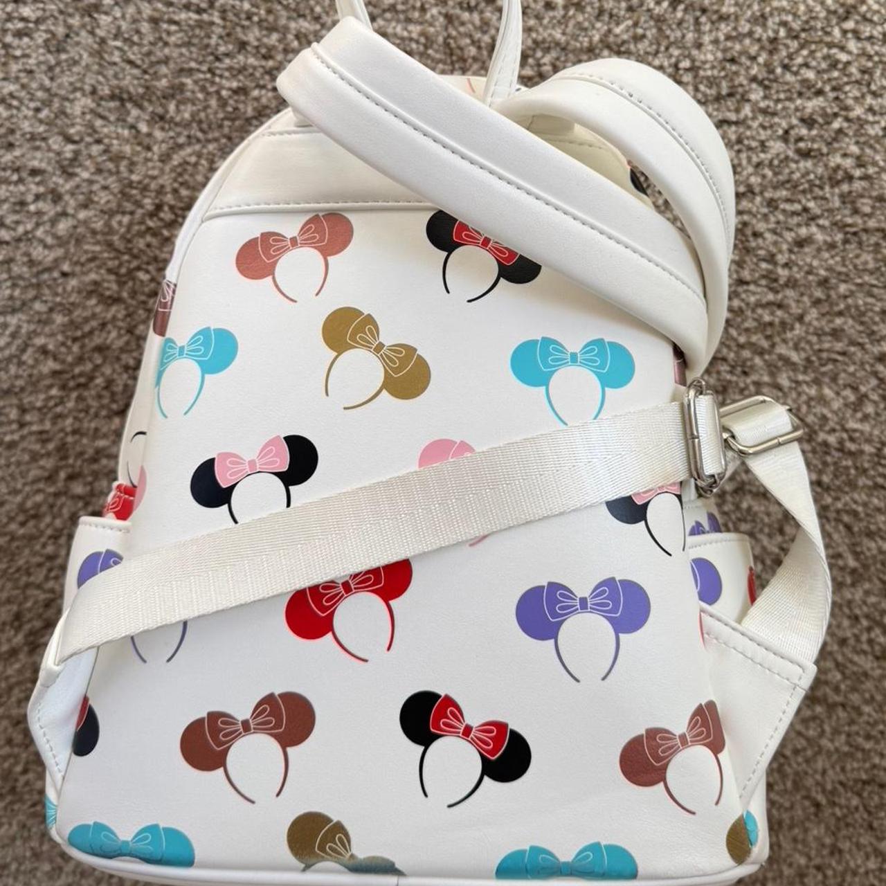 Disney Minnie Mouse backpack. Used only twice, in prestige condition. The only flaw is a small stain on the bottom 🤍🫶🏼 #MinnieMouse #DisneyInspired #LoungeFly mouse ears, cartoon print, mini backpack, collectible accessory, cute bag, character bag, playful design, embroidered detail, small stain flaw, youth style show more White Multi