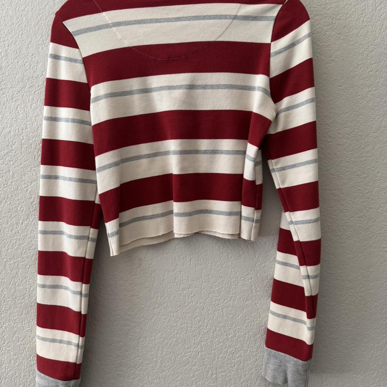 Red and white striped Lazy One cropped top. It’s super cute with some jeans ❤️! It is 95% cotton, super comfy and a bit stretchy. #stripes #croptop red and white stripes, cropped sweater, cotton blend, stretchy knit, casual wear, cute top, long sleeve, sporty style, relaxed fit, seasonal fashion show more Multi Red