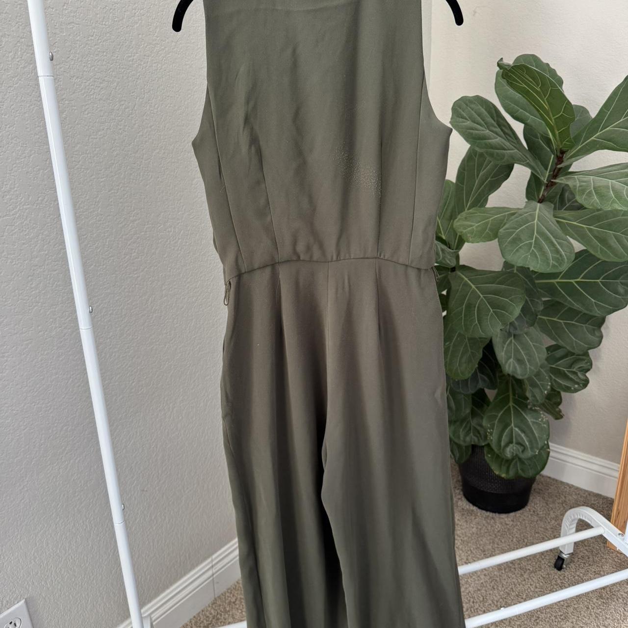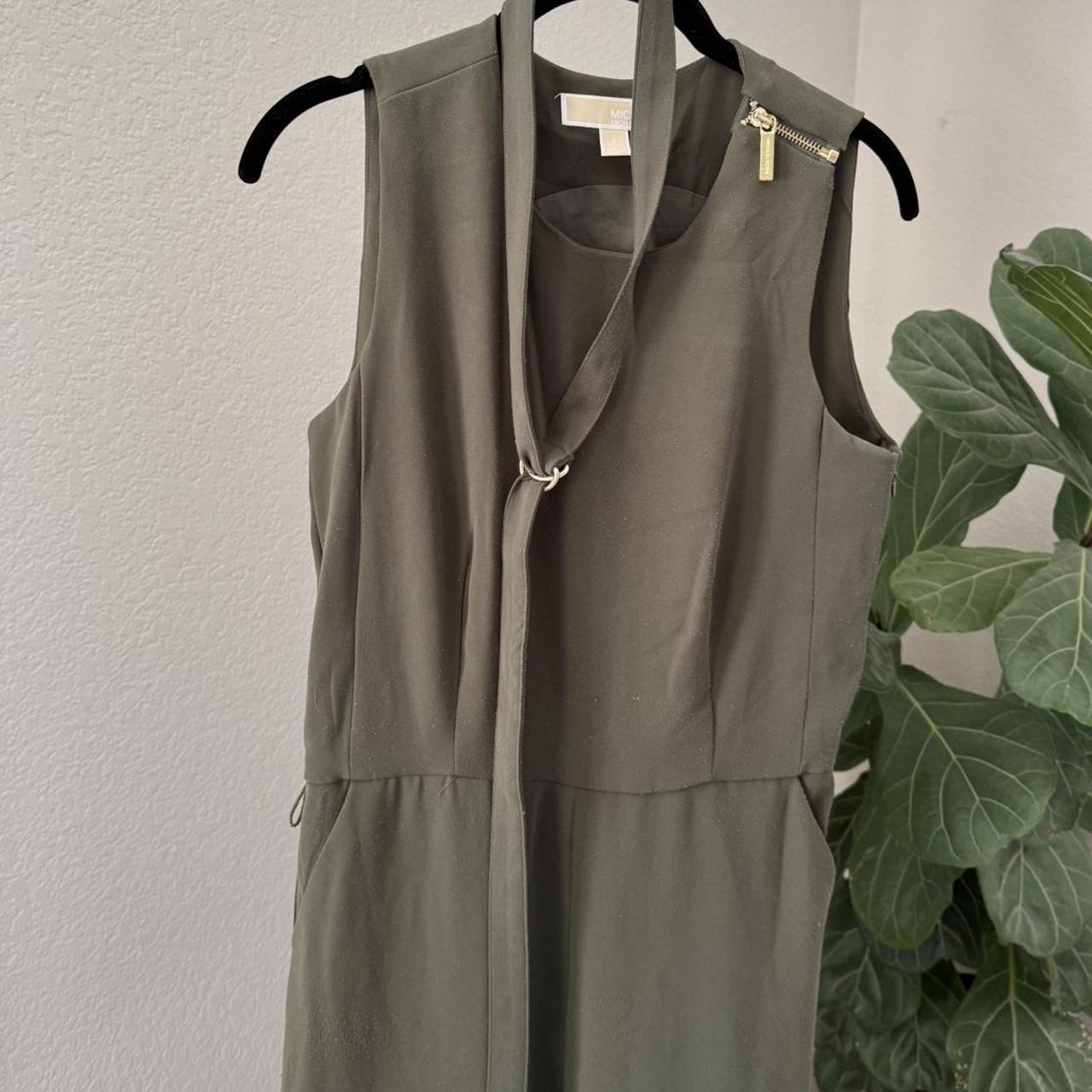 Michael Winter Green Color Jumpsuit Wide Leg Zipper. Please note there is pilling on this jumpsuit, unfortunately due to the material. #MichaelKors #Jumpsuit #Dress