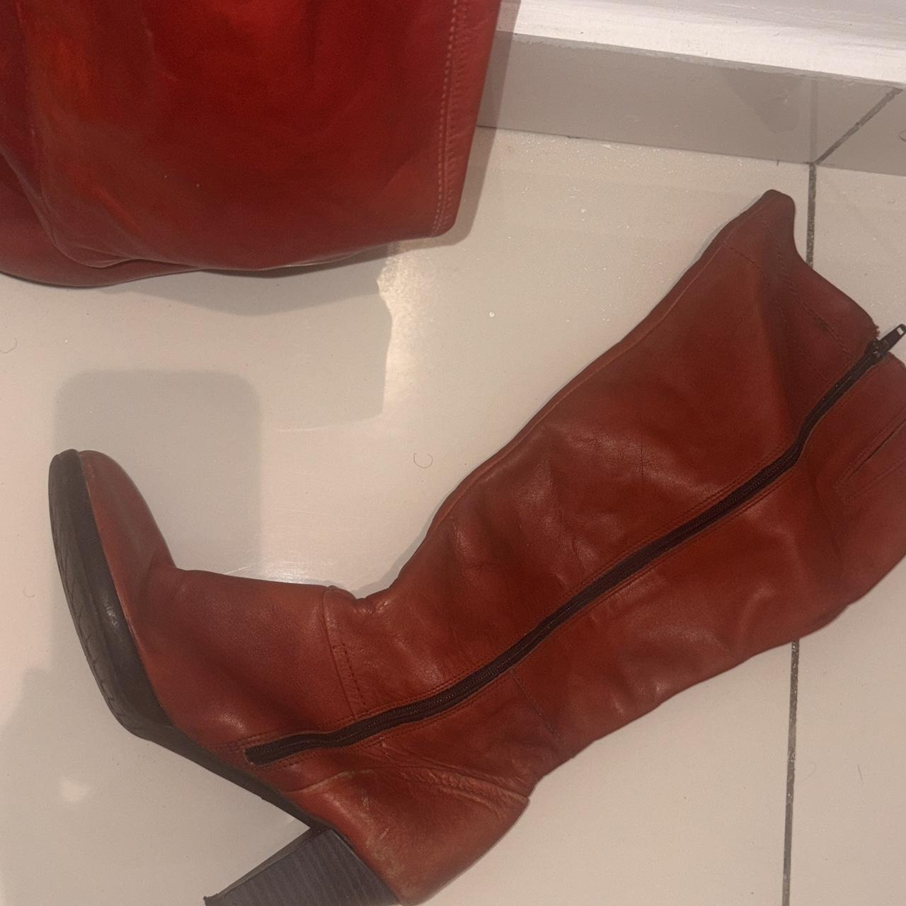 Knee High Red Boots.